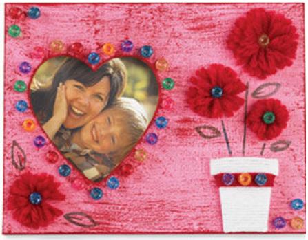 - Glue flower pot to frame as shown, glue flowers in place.