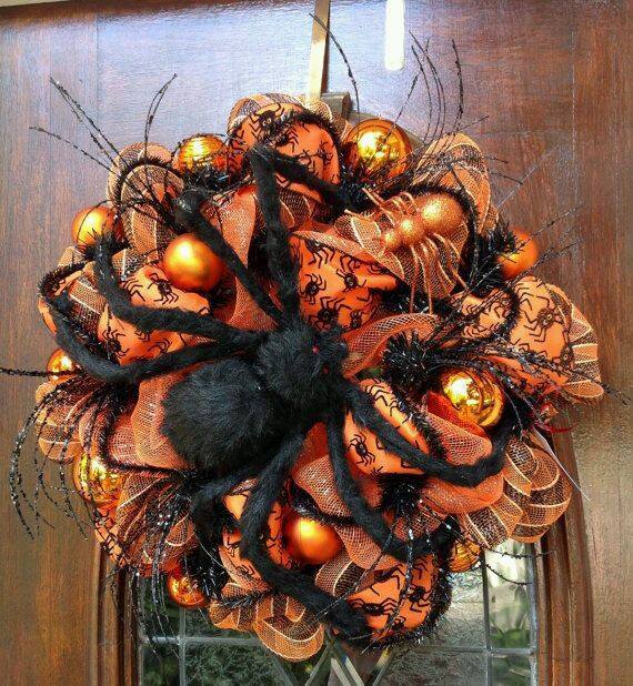 Published September 23, 2016 at 570 × 618 in Orange & Black With Spider Wreath For Halloween