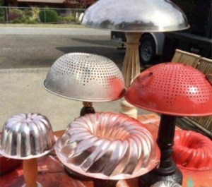 I found this great idea on the internet and wanted to share. These are mushrooms made from bowls and candlesticks and the larger ones are made from lamps. They are so unique and would be a great spruce up for recycled art in your garden. The best thing is you can source the materials from your old items or cheaply at any thrift or yard sale.