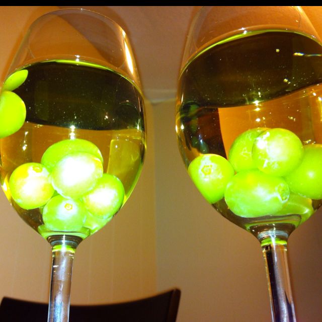 A delicious white grape spritzer is the perfect drink to bring in the New Year. Frozen fruit serves as yummy ice cubes and the super sour rim just might be sour enough to knock you into 2013.