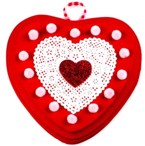 step 3 – Remove backing from sticker heart and place in center of doily.