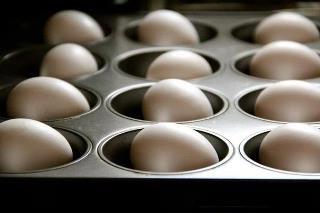 Bake in a cupcake tin at 325 for 30 minutes. Eggs will have a “creamier” texture on the inside and the shell can obtain slight browning where the egg hits the edges o the cupcake pan. This idea is great to prepare eggs to color or when you need many and already are using all of your burners. This is a great idea also to prepare what you need for few days to have for that extra protein for a lunch. When you remove them from the oven immediately submerge them into an ice bath, which will allow for easy peeling when you are ready to do so.