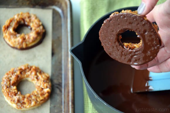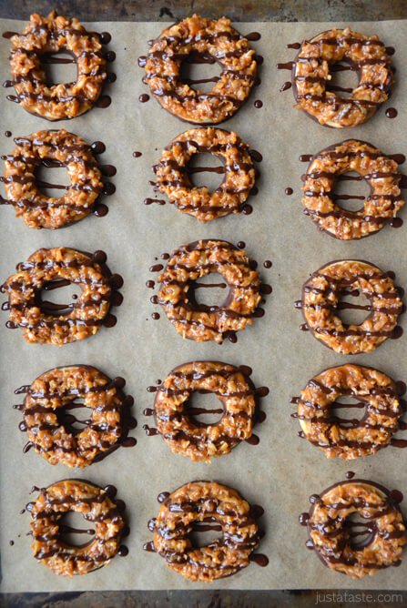 Bake up a homemade take on the iconic Samoas Girl Scout cookies, ordinarily only available a few months out of the year. Just imagine a buttery shortbread base piled high with a mix of toasted coconut and caramel that’s dunked and drizzled in dark chocolate.