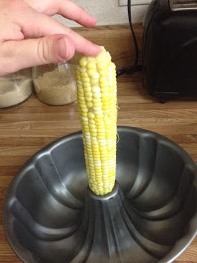 7c927a7d-2d4f-4f66-a7a1-8878e180e3baWhat an awesome life hack. When you need to cut corn from the cob do so in a bunt cake pan. It helps steady the cob and all of what you cut goes directly into the pan.
