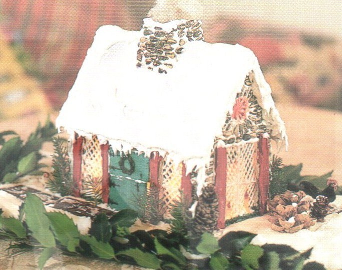 Meringue latticework is used for the doors and windows, which are glued to gingerbread pillars with royal icing (a mixture of egg whites and powdered sugar).