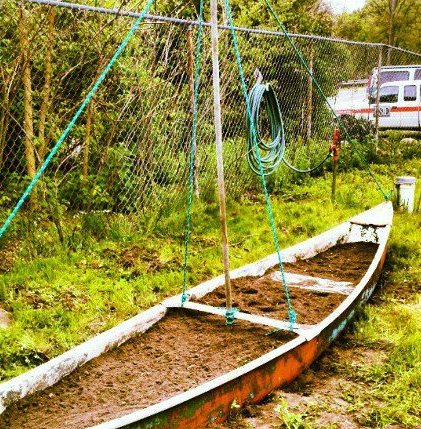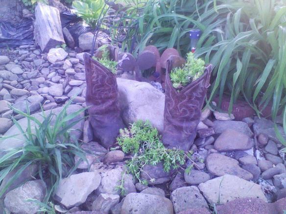 There is a growing number of posts I have made to show numerous ideas of re-purposing and creative ways to make planters. Here we have an old pair of cowboy boots picked up cheaply at many yard sales or thrift stores, recycled house rain gutters that have been hung on a fence (note how they aren’t hung perfectly left to right but with a slight tilt – this gives the eye something more appealing to admire, and lastly we have an old boat (but you could use a canoe) which is ready to go after embedding it into the ground a ways and filling it with a rich soil for the garden in the Spring.