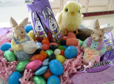 Pop and Hop: Add 1 or 2 drops of food coloring to separate batches of the sugar syrup from your favorite recipe for popcorn balls, add popped corn, and form into colorfully corny eggs.
