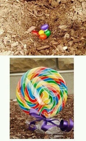 As the weather gets nicer outside I am dieing to get out and garden. I found this great little planting treat on Face Book on $5-10 Dollar Meals- Cheap Eats. Grab a handful of Jelly Beans and plant them in the garden with your children. Have them water them thoroughly and talk to them about planting and how something that starts from seeds can grow and provide us with food to eat. Do tell them though that these Jelly Beans are a fun magical experiment and that if they plant them and nourish them carefully something might grow that they will love. In a couple of days after you see them watering and caring for their magical beans – when they are not looking – take the beans out and “plant” a huge lollipop. They learn something about the process of gardening, doing a little work pays off and may want to help more in the garden.