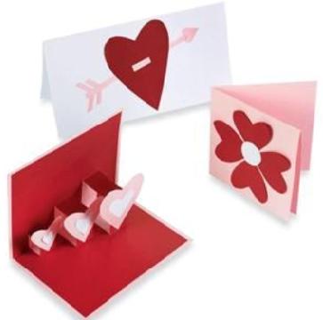 Use glue to adhere cut hearts to the front of the steps inside the card. The hearts will pop up when the card opens. Embellish card as desired with markers.