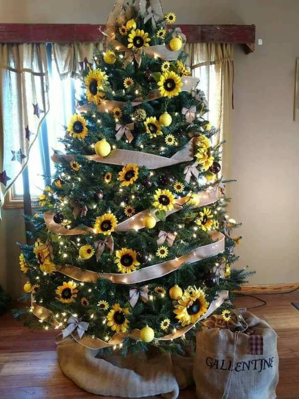 So it’s not Christmas of course. But who would of thought to use your Christmas tree during the summer. Here the designer used white lights, sunflowers, yellow bulbs and champagne colored ribbons to make garland and little bows. Heck, if you have have the room you should just go for it. The skirt is made from potato sack material and a cinch bag was placed besides the tree to give it a finished appearance.