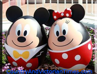 Almost all of us have a special place in our hearts for all things Disney. Here is an idea to spread the love to our garden with just a little effort, time and expense. Layout enough circular bricks to make Mickey’s head (or Minnies). Mark the area and remove the bricks. You need to dig out this area to free it from grass and weeds and all the roots that you don’t want springing up in your new display. When you are done digging and cleaning the dirt in this area replace the bricks. To the cleaned out soil you will want to add potting and garden soil and office shredding if you have them. Here garden gnomes that depict Disney characters and a nice flag was added. Then plant flowers or annuals or whatever you like. What a conversation starter.