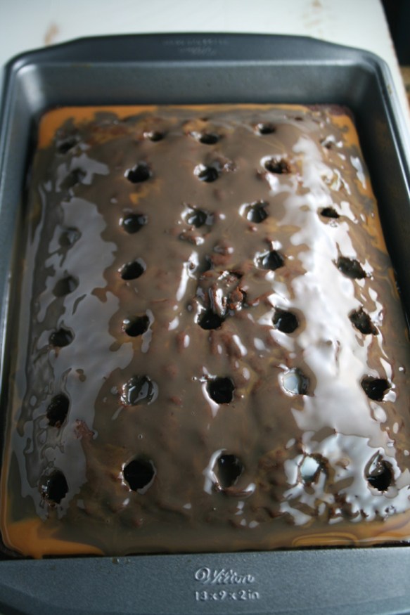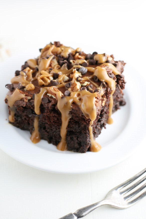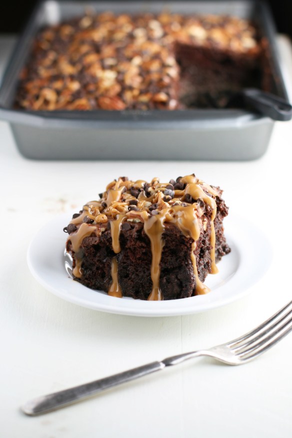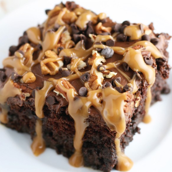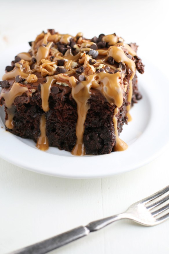Chocolate Turtle Poke Cake – Mom Loves Baking