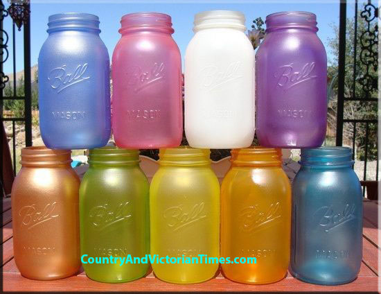 420610_625983630765062_442155601_nMix a clear white paint with fabric dye/food coloring until you get desired color. Paint the outside of the glass and let dry. You should have a nice color and you can seal that with varnish or polyurethane to prevent it from peeling. Use to store food products (stored in zip lock bags) in the kitchen, craft items, office supplies in the office, seeds for your garden etc. Do not use these by directly putting food inside of them for your protection. You could paint the bottoms one color and when dry paint the tops another color letting them drip down. I think this being done to a larger size container could be used as a centerpiece for a wedding since you could color co-ordinate them with different color schemes. You can do this with recycled items or it would really bring a dollar store vase up a notch… and don’t stop at glass – you can do this same process with plastic.