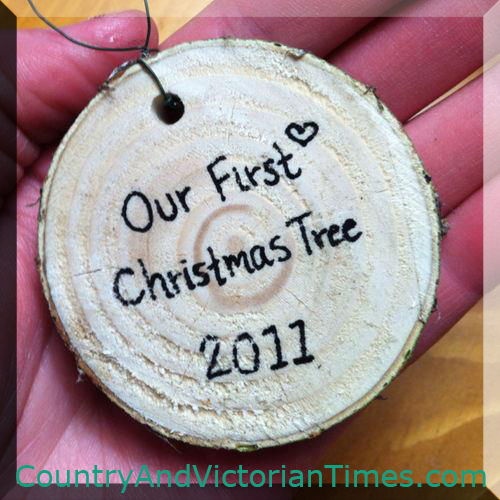 Special times and celebrations have always been important during this time of year and making keepsakes is always important. The picture above shows the cut off end of a Christmas tree made into an ornament which makes for a cherished keepsake. Just use a cut disk from the bottom trunk and write a message with a sharpie. Drill a hole and use wire or ribbon to make a loop and bow to hang.