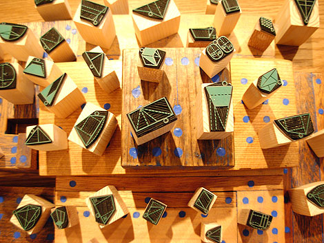 Mirror Image Stamp A flat rubber stamp used as a tool to create a reverse or mirror image of a rubber stamp.