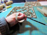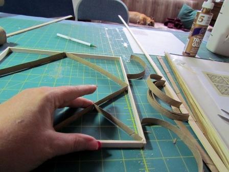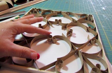I curled the cardboard with the end of a paintbrush where I wanted curls and used the tacky glue to glue it as I went.